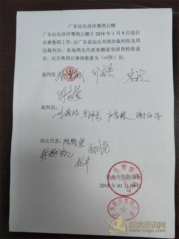 汕头欣洋公棚决赛集鸽图集(2018-1-9)