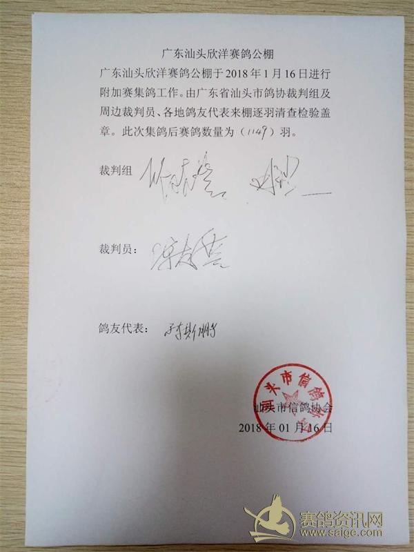 汕头欣洋公棚附加赛集鸽图集(2018/1/16)