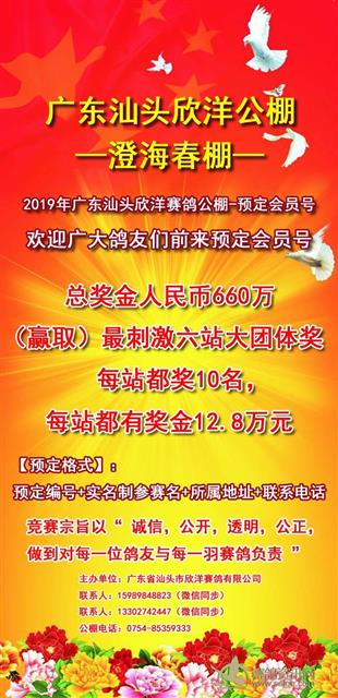 2019广东汕头欣洋赛鸽公棚-预定会员号