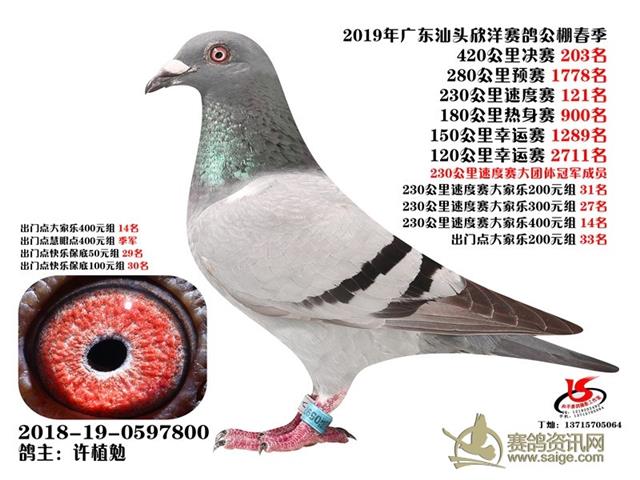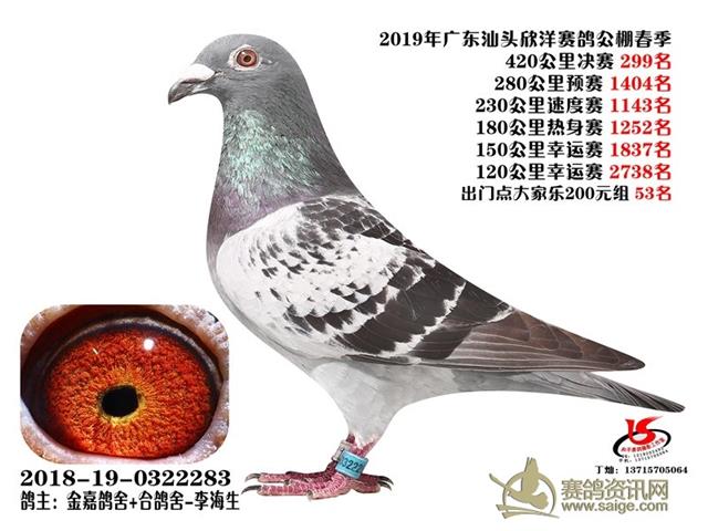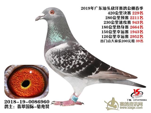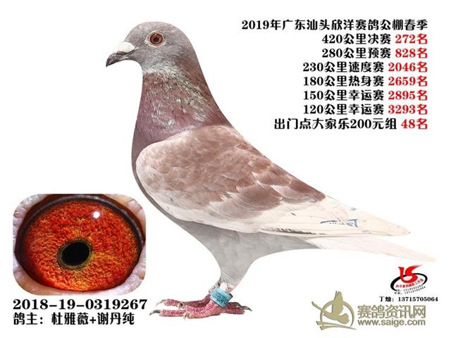 广东汕头欣洋春棚2019年第五届春赛获奖鸽靓照(201-300名)