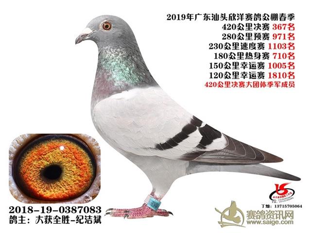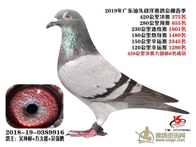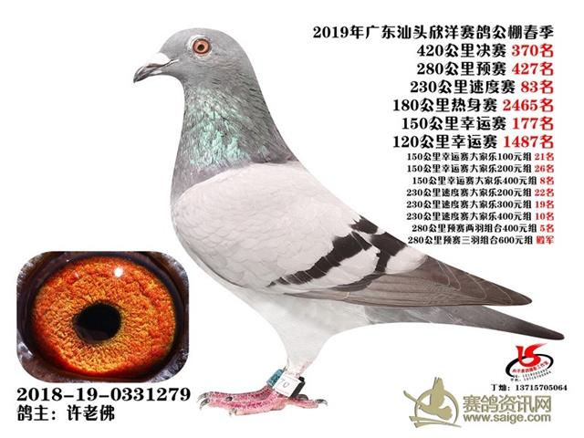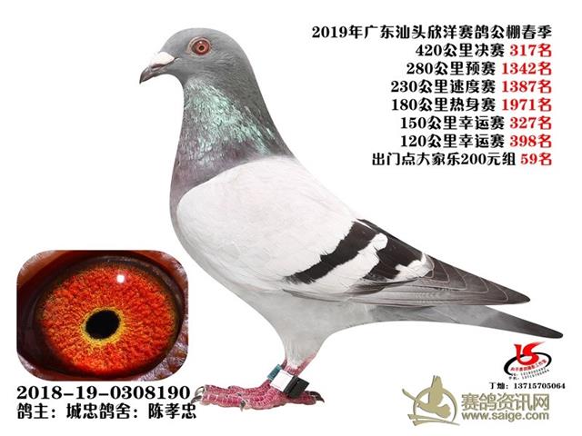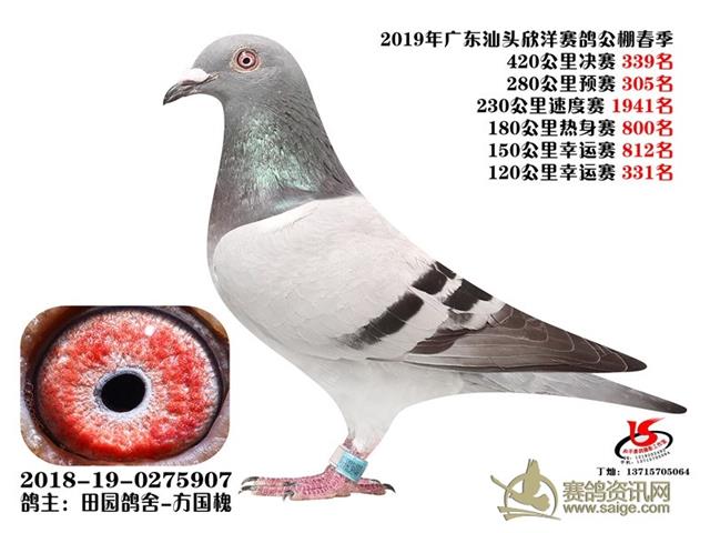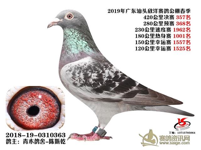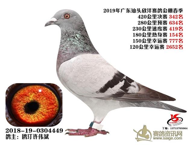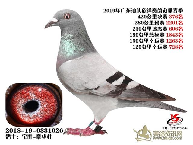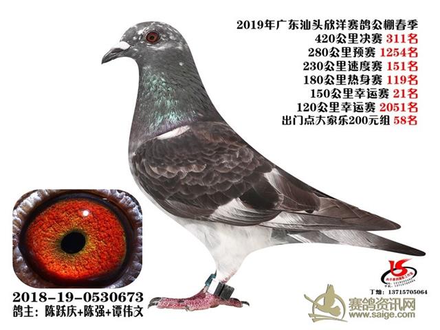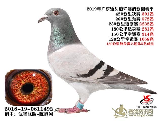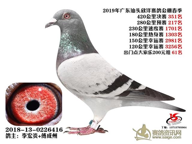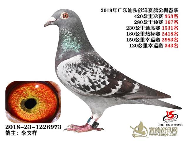 广东汕头欣洋春棚2019年第五届春赛获奖鸽靓照(301-400名)