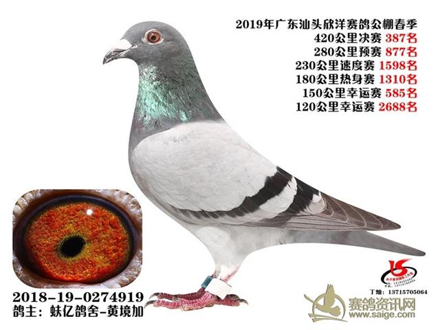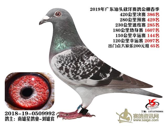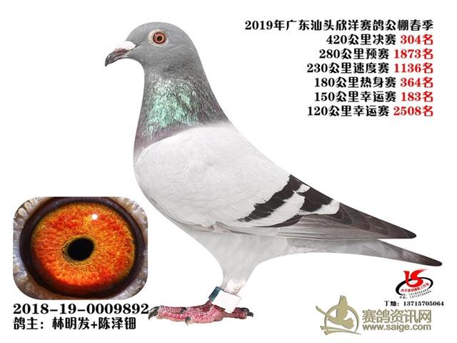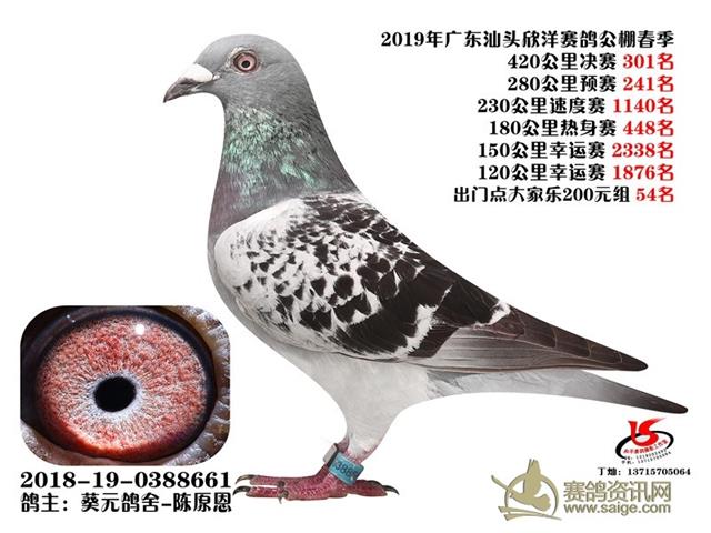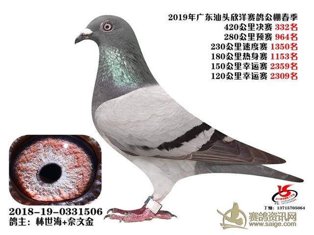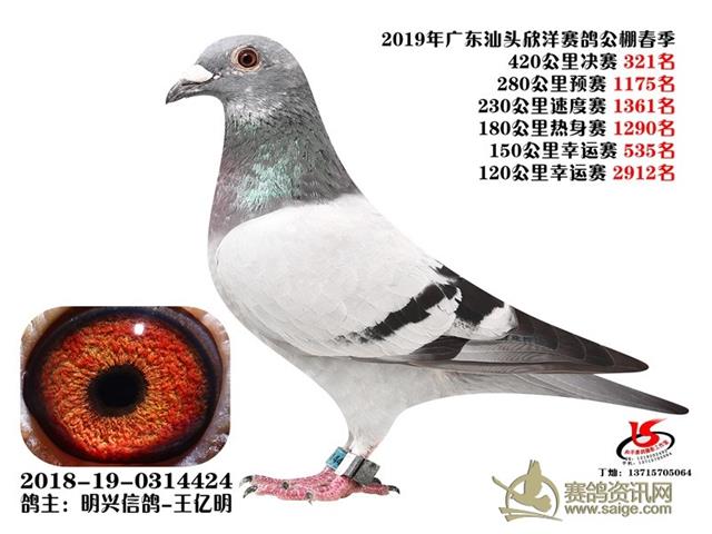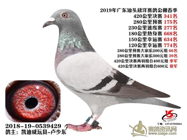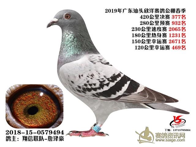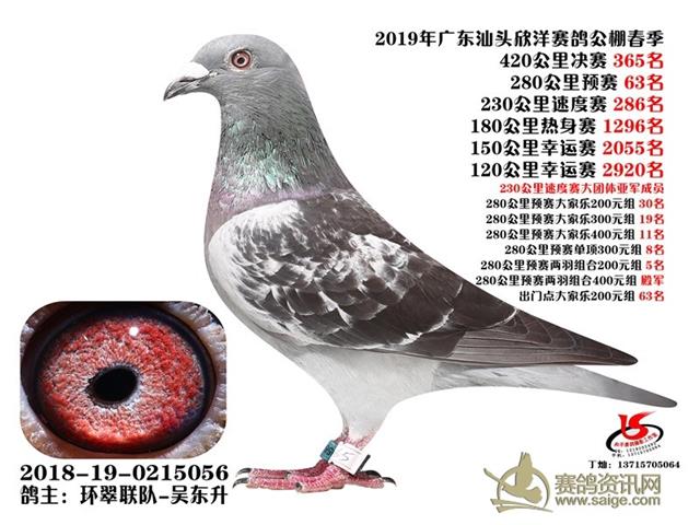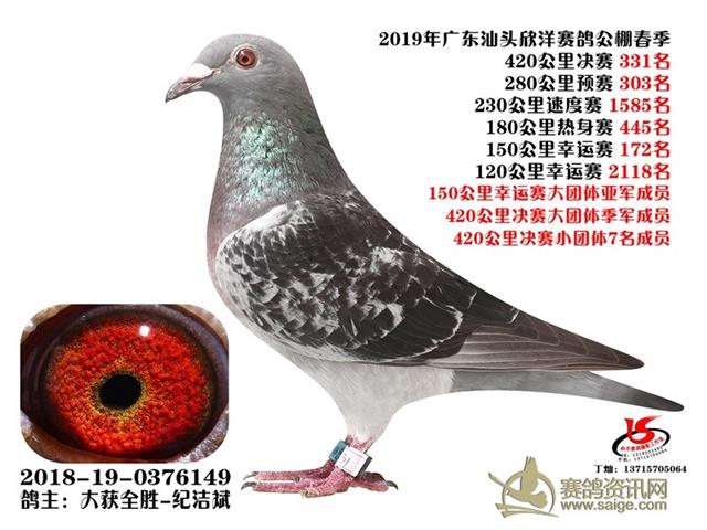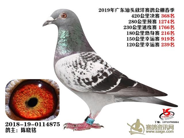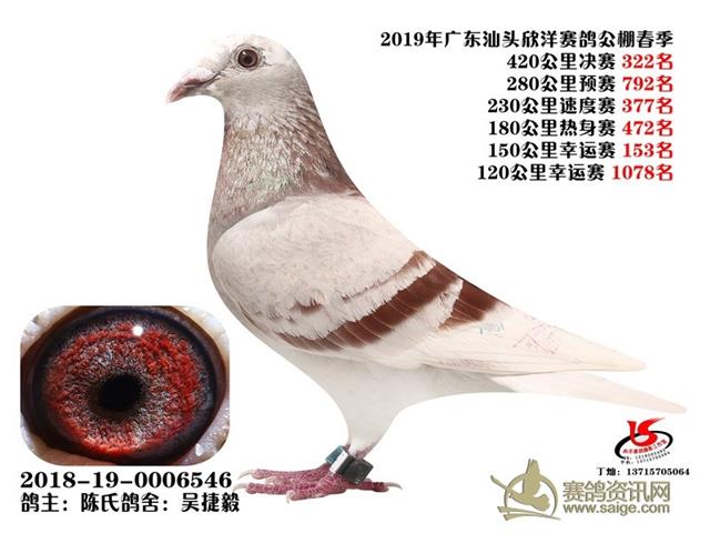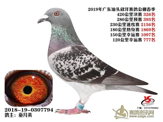 广东汕头欣洋春棚2019年第五届春赛获奖鸽靓照(301-400名)