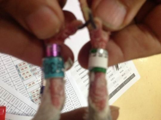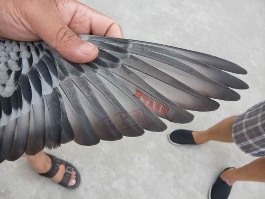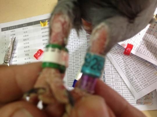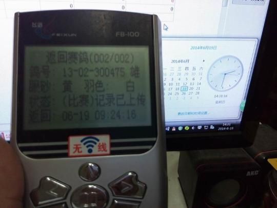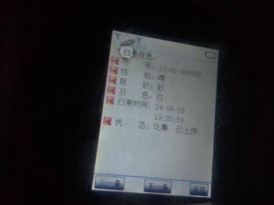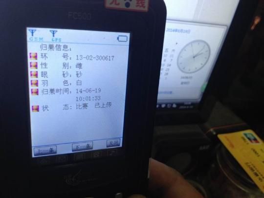 天津市夏季顶级赛事之一南翔万元组第三关600公里于6月18日清晨05点20分在河南郑州顺利开笼。此次南翔万元组第三关600公里集鸽上笼198羽。比赛当天从清晨05点20分开笼到下午19点20分仅有1羽赛鸽归巢。鸽主:孙正人,赛鸽环号:2013-02-300930,此鸽整整飞行了14个小时,分速:679.6496米/分。按照南翔万元组规程,有效报到时间从开笼至次日中午12点00分。比赛依规进行。 次日早晨,一羽环号为:2013-02-301311的赛鸽率先登门报喜,拉开了南翔万元组第三关600公里报捷的序幕。截止到19日上午11点52分,南翔万元组共计归巢19羽。造成此次南翔万元组第三关600公里归巢不乐观的原因,可能与天气恶劣有关。据记者从气象预报获悉:6月18日至19日,河北大部分地区阴有雨;特别是19日,保定、衡水、邯郸、沧州等地南部均有大范围的降雨,并伴有短时雷电、大风现象,降雨量20-40mm,局部地区降雨达到50mm。附南翔万元组第三关暂定成绩、验鸽图。 南开、南翔万元组第三关初榜 6月17日第十一届万元组第三关600公里大赛 司放地:郑州 经度:113 经分:37 经秒:23.100 纬度:34 纬分:50 纬秒:0.360 第三关成绩 名次 区棚号 会员姓名 足环号 返回时间 飞行距离 飞速(米/分) 隶属协会 1 10821 孙正人 13-02-300930 2014-6-18 19:20:59 571.574 679.6496 和平 2 07788 何宾 13-02-301311 2014-6-19 7:18:20 570.9 533.3852 和平 3 09268 齐殿勋 13-02-300475 2014-6-19 9:24:16 574.132 479.9365 河北 4 07709 杨屹中 13-02-301542 2014-6-19 9:32:33 576.54 478.6352 河东 5 05052 刘学海 13-02-301064 2014-6-19 9:28:12 573.829 478.1112 河东 6 05052 刘学海 13-02-300637 2014-6-19 9:29:53 573.829 477.4415 河东 7 13632 张金国 13-02-301522 2014-6-19 9:09:50 563.964 477.1942 西青 8 13999 贾彪 13-02-300963 2014-6-19 9:38:17 569.476 470.5311 津南 9 11333 姚玉强 13-02-300642 2014-6-19 10:07:29 579.567 467.5876 北辰 10 09268 齐殿勋 13-02-300479 2014-6-19 10:02:04 574.132 465.2358 河北 11 08858 韩兆新 13-02-300617 2014-6-19 10:01:33 573.739 465.1121 东丽 12 07709 杨屹中 13-02-301546 2014-6-19 10:26:49 576.54 458.0016 河东 孙正人