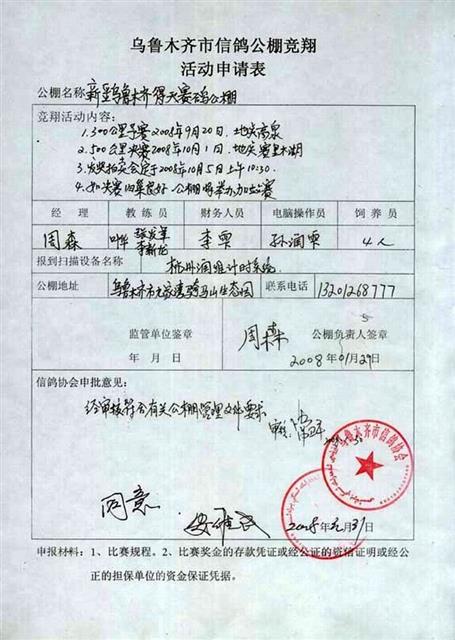 新疆得天赛鸽公棚2008秋季首届86万竞赛规程