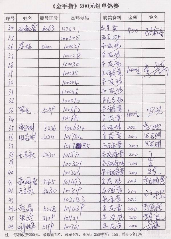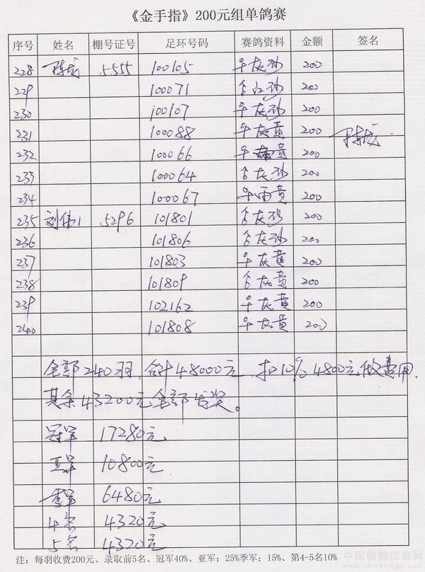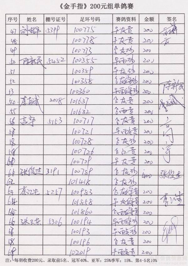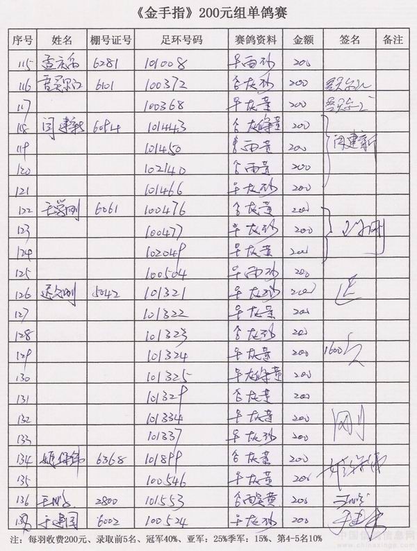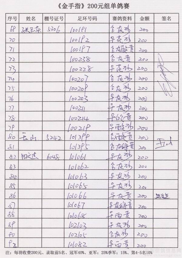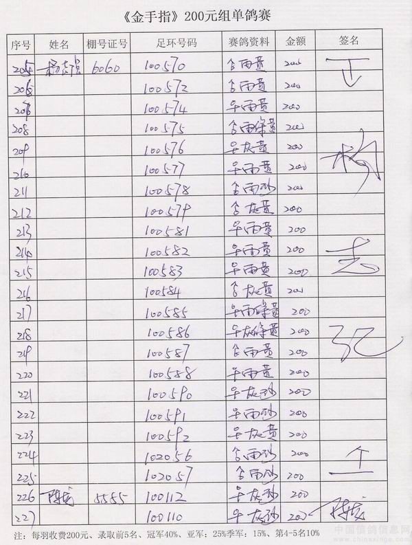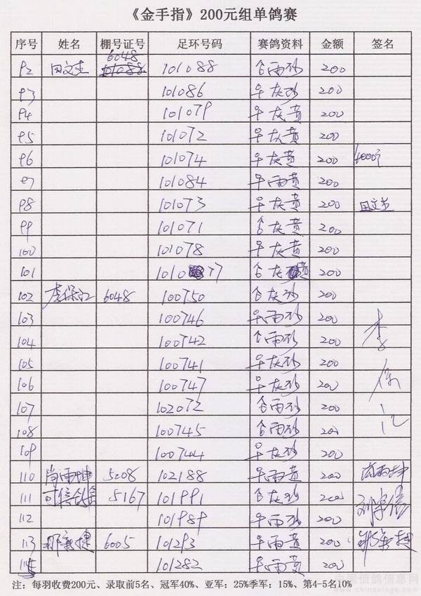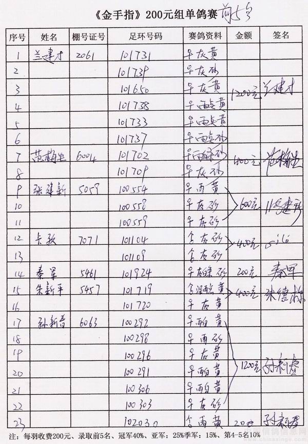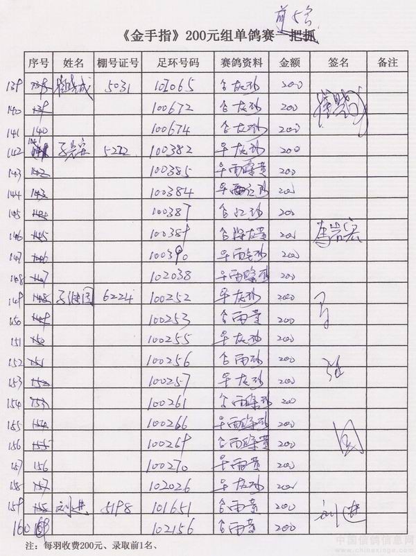新疆乌鲁木齐市新市区第七届陈龙杯幼鸽特比环指定鸽公示表