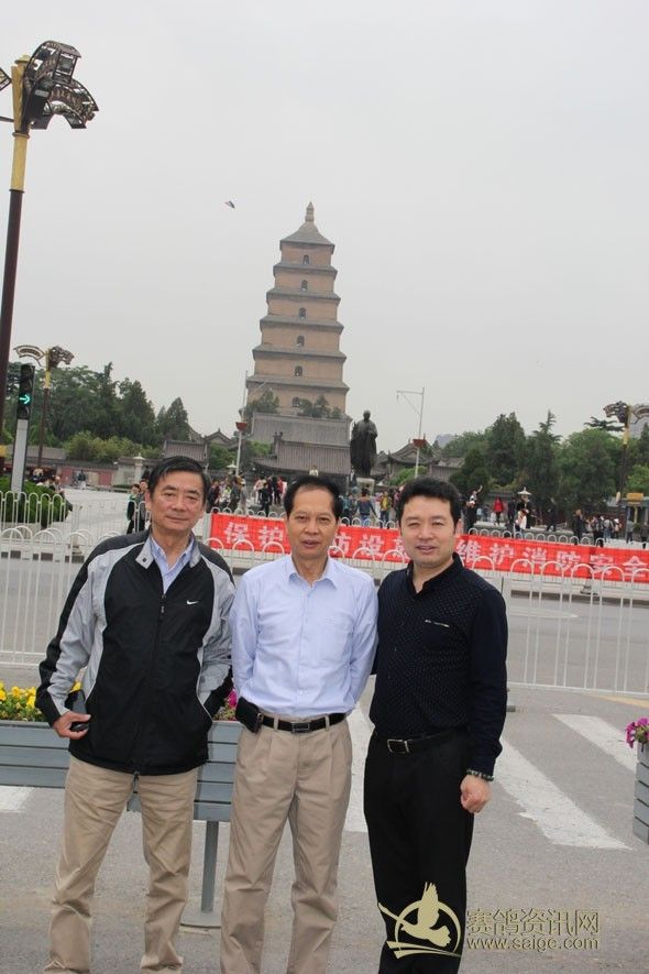 西安凯鸽集团董事长王军、上海知名鸽友宋士飞、、广州金羽董事长郑伙强在西安留影