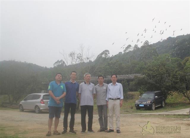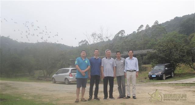 右一:金羽总经理郑伙强郑总 右二:金羽总教练施教练 中间:东莞第一任信鸽协会会长,罗茂康 左一:东莞鸽友 左二:浙江温州鸽友,郭鹏举(每年参赛龙湾俱乐部)