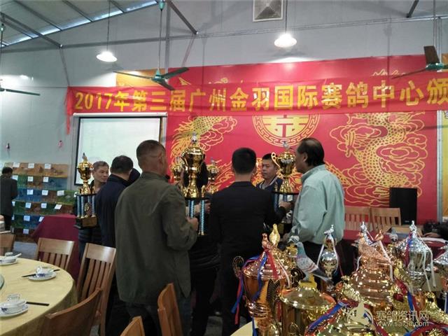 广州金羽国际赛鸽中心2017年颁奖拍卖盛会圆满结束 在此感谢各位的支持与信任,此次拍卖会有来自北京、香港、台湾、江西萍乡、江西兴国、江西赣州、福建、广西柳州、广西南宁、广西梧州、广西桂林、广西河池、湖南等外省鸽友,还有广东各市代理点、鸽友参加此次大会,全场最高价为北京苗爽山的四关鸽王、三关鸽王、两关鸽王、百日赛冠军于一身荣耀的决赛23名入赏鸽,4万成交。 转眼瞬间进入2018年,我们会继续努力,做好自己,做好金羽品牌,为广大鸽友服务,提供一个“公平、公正、公开”平台,赛出真水平! 恭祝各位新年快乐,阖家欢乐,鸽业兴旺,赛鸽成绩步步高!