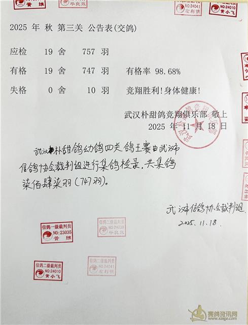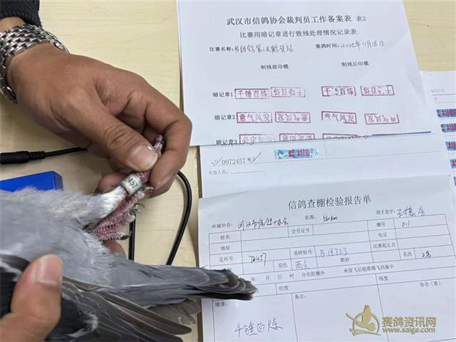 本场比赛由武汉市信鸽协会裁判组全程监赛,鸿飞赛鸽传媒全程网络视频直播,工作人员工作严谨熟练:足环信息——核对无误!羽色特征 —确认清晰!暗记印章——精准落位!入笼登记——同步完成!环环相扣,一丝不苟,用专业与细致为赛鸽勇士的公平竞翔保驾护航!