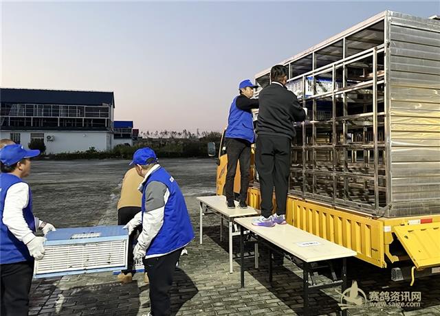 集鸽结束后鸽笼上车,鸽车铅封,销毁暗记章,裁判填写集鸽清单,第三关比赛有效上笼747羽,鸽车连夜出发。
