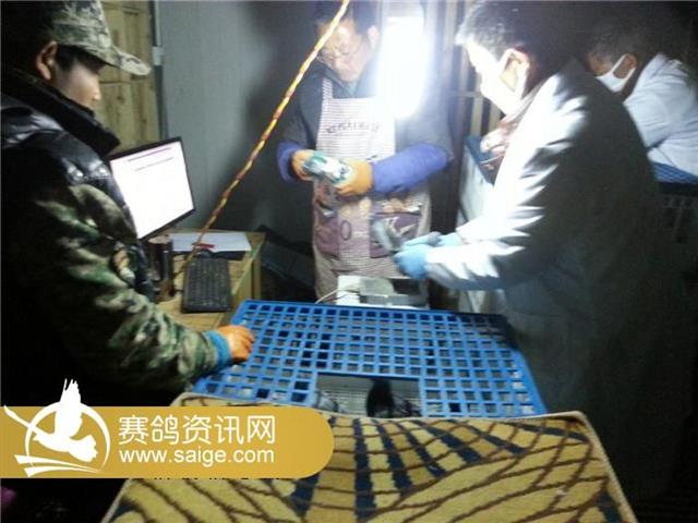 晚19:30分,工作人员(12人)开始抓鸽,核对工作也同步进行,我们一羽一羽的对所有的参赛鸽进行扫描,并核对足环号,羽色,期间发现了一些参赛鸽的羽色、足环号、以及电子环有问题,并一一进行了修改和更换。截止2014年元月2日下午18:44分,共计用时二十三小时四十四分钟(23小时44分)核查工作全面结束,共计存棚赛鸽6332羽(已上网,请鸽友查阅!不排除路训还有陆续归巢鸽),其中羽色有误的98羽(已修改,近日上网公示),电子环损坏的19羽(已更换),并且清查出未登记无主鸽62羽(将上网公示,请参赛鸽友认真核对)。在此真诚的感谢安宁鸽友李海航、杨雄能、黄代琦,你们二十多小时不间断的认真核对、没有合眼,无私的奉献精神,双龍人相信会感动上天的。