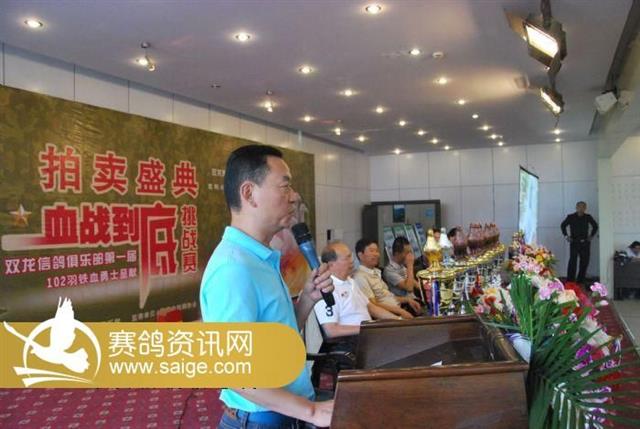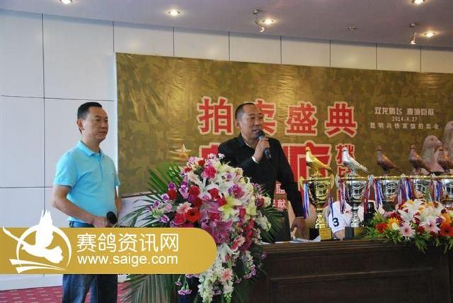 2014年4月27日,星期日。云南昆明兴铁宾馆,多功能厅,座无虚席。云南双龙春棚预赛、血战到底挑战赛发奖暨拍卖会如期隆重进行!拍卖发奖大会由云南著名养鸽家、金牌拍卖师刘云先生主持,到场嘉宾有云南养鸽前辈、云南省鸽协副主席、宣威鸽协主席徐俊老师,安宁鸽协负责人郑云、东荣赛鸽中心总经理殷兆德,太阳鸟赛鸽中心总经理陈安礼,北京惠幅国际总经理张军,赛鸽名家、明辉企业总经理梁明庆、云南呈贡赛鸽名家韩金老师,贵州金果房地产董事长、赛鸽大名家赵修明,云南昆明赛鸽名家、血战冠军得主张光荣先生......!