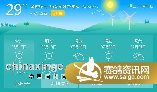 尊敬的鸽友: 为让广大鸽友们了解重庆龙乡赛鸽公棚最新天气变化,特提供近5天天气情况。