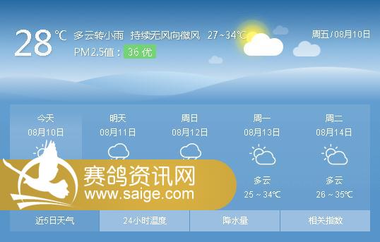 尊敬的鸽友: 为让广大鸽友们了解重庆龙乡赛鸽公棚最新天气变化,特提供近5天 天气情况。