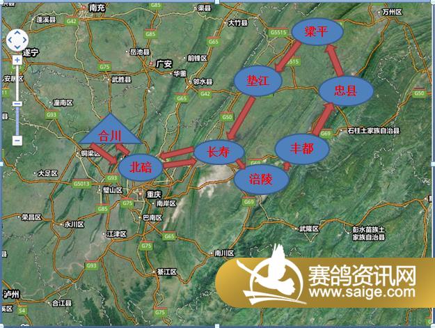 尊敬的鸽友您好: 为了更好的服务,让您的爱鸽更加安全快捷到达公棚,新东方公棚定7月17日(星期二)在以下地区收鸽:(长寿、涪陵、丰都、云阳、万州、奉节、垫江、忠县、梁平) 重庆新东方国际赛鸽公棚接鸽线路图