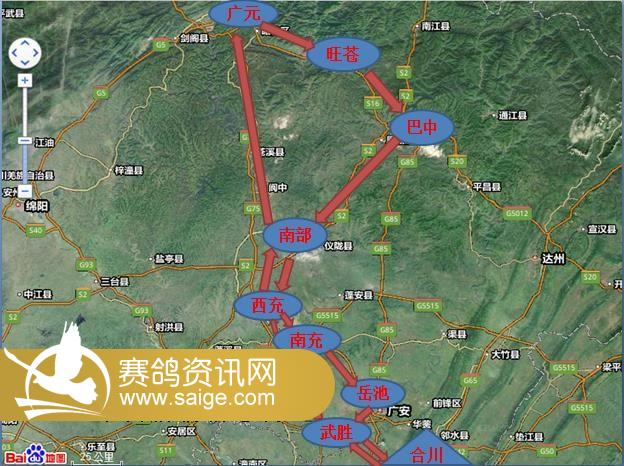 尊敬的鸽友您好: 为了更好的服务,让您的爱鸽更加安全快捷到达公棚,新东方公棚定8月15日(星期三)在以下地区收鸽:(广元、旺苍、巴中、阆中、西充、南充、岳池、武胜) 沿途有交鸽的鸽友请尽早与张师傅师傅:18983669813,13883915692或地区对应代收点联系。请大家相互转告! 重庆新东方国际赛鸽公棚接鸽线路图