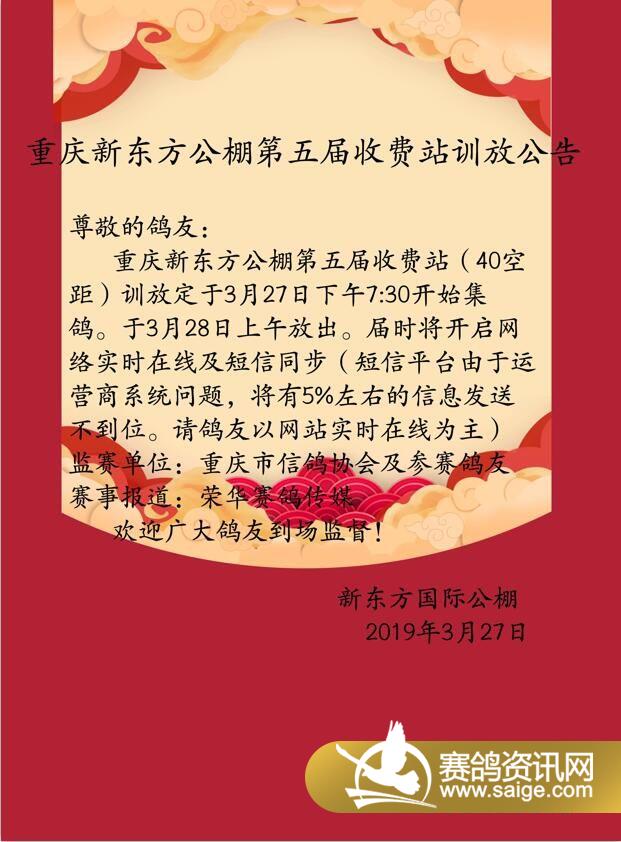 重庆新东方赛鸽公棚:第五届收费站训放公告!