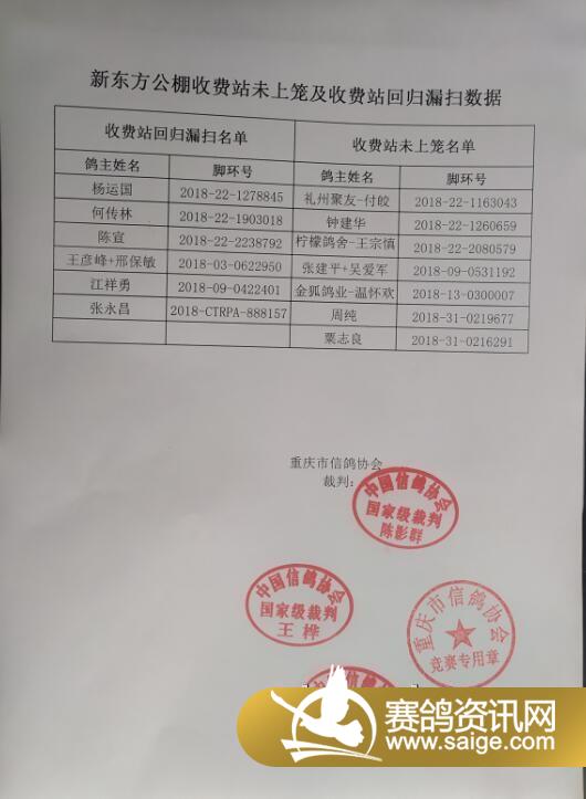 重庆新东方赛鸽公棚:未上笼及收费站漏扫数据!