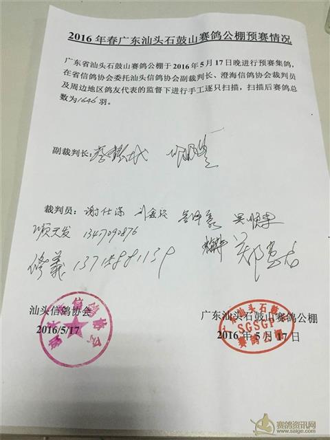 广东汕头石鼓山赛鸽公棚2016年预赛集鸽照片