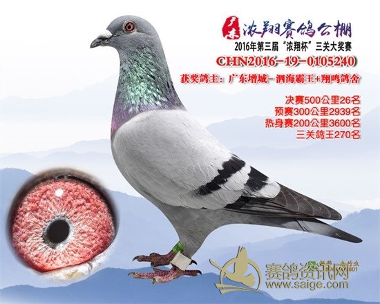 祝贺我棚参赛会员泗海霸王-章满金在浓翔赛鸽公棚500公里决赛中获得26名。
