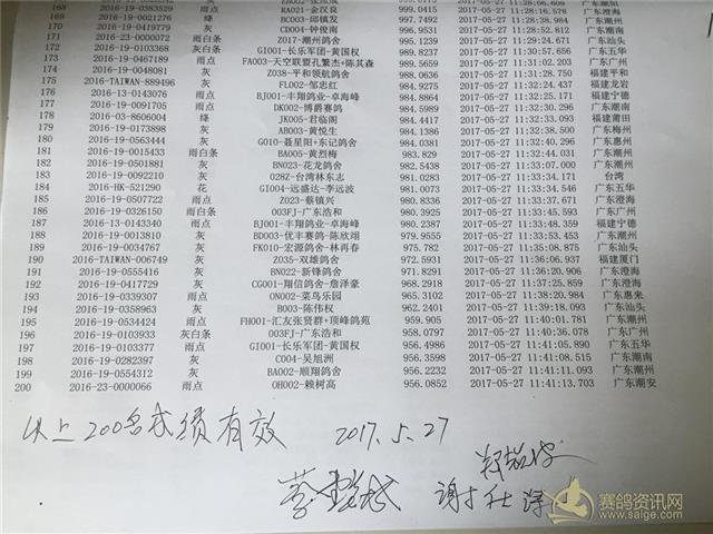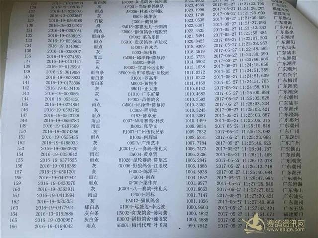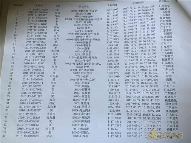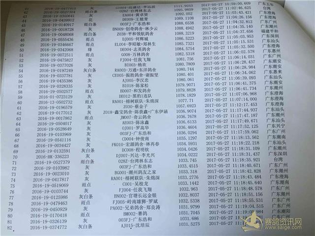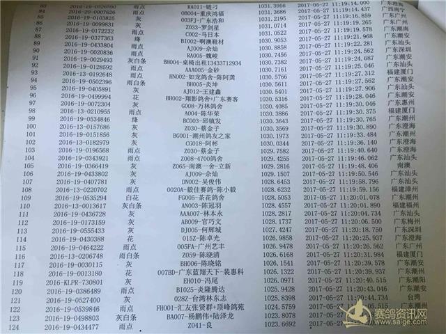 广东汕头石鼓山赛鸽公棚2017年预赛获奖名单