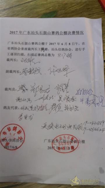 广东汕头石鼓山赛鸽公棚2017年决赛集鸽照片