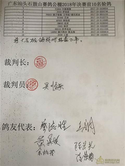 广东汕头石鼓山赛鸽公棚2018年决赛验鸽照片