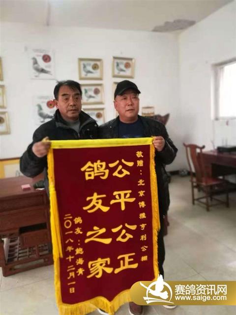 丰台鸽友鲍海清给北京博雅亨利公棚送来锦旗,并和公棚谭经理合影。感谢广大鸽友对北京博雅亨利公棚的大力支持,鸽友的认可是博雅亨利公棚前进发展的最大动力。