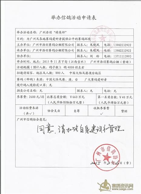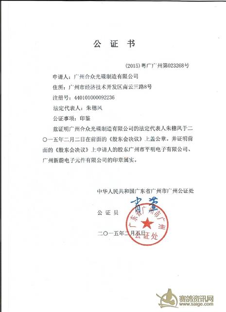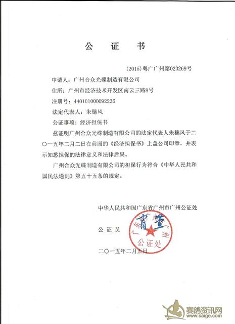 广州市浩羽(黄埔)公棚赛程公证书、担保书