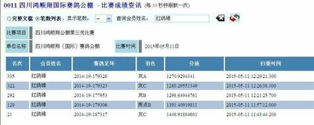分享胜利的喜悦 热烈祝贺广州浩羽(黄埔) 公棚会员红鸽缘在四川鸿顺翔国际公棚决赛获得21名128名292名322名335名的好成绩!