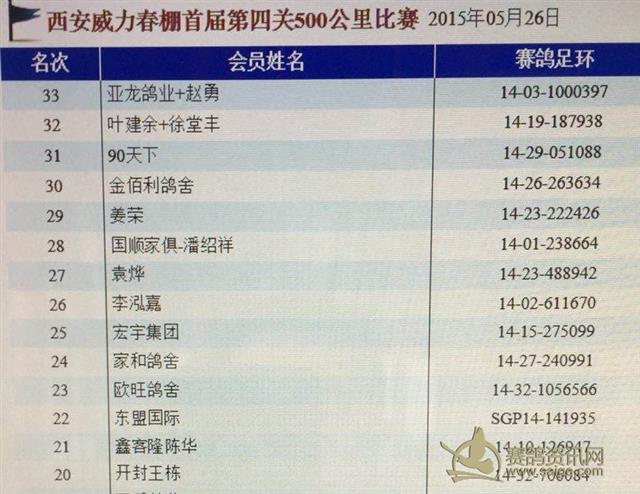 昨天西安威力春棚的比赛视频可抢了不少鸽友的眼球,10000多羽参赛鸽,到第四关500公里决赛才1403羽入笼鸽,可见春棚挑战性可非一般.不过敝棚的铁杆粉丝东盟国际及汤拥军+徐堂丰获得第22名及32名的优异成绩,听说东盟国际可能是名人挑战赛的冠军,不过有待威力的最终裁定!祝贺他们!
