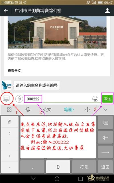 黄埔微信公众号智能查鸽系统引导