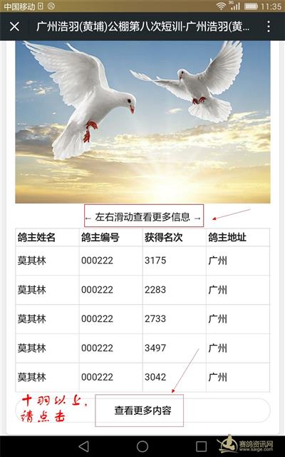 由于网速"塞车",赛事直播速度可能没您想象中的那么迅速, 您也可通过关注公众号进入智能查鸽系统, 希望智能查鸽系统能给没时间看直播的鸽友提供方便