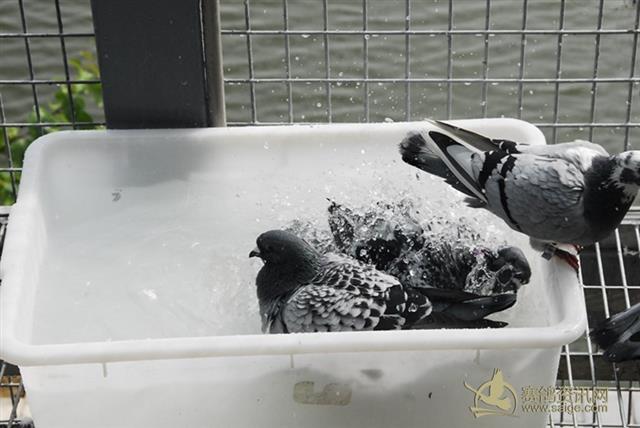 广州市浩羽(黄埔)公棚赛鸽沐浴图