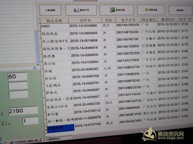 10点18分集鸽完毕,共2190羽赛鸽上笼