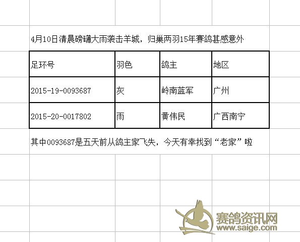 广州浩羽(黄埔)公棚冒雨归来的迟归鸽