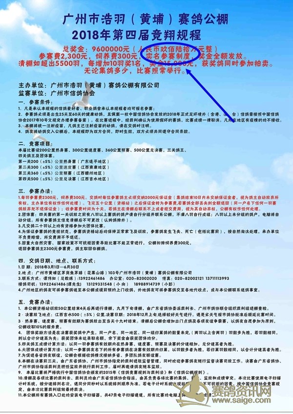 2018年规程印刷体从3月10日开始已陆续寄给各地代理处,今年的规程已注明是实名参赛制度,请各位代理在登记集鸽单时一定要登记实名,若是以鸽舍名称参赛,也需加上实名后缀,谢谢大家的配合!