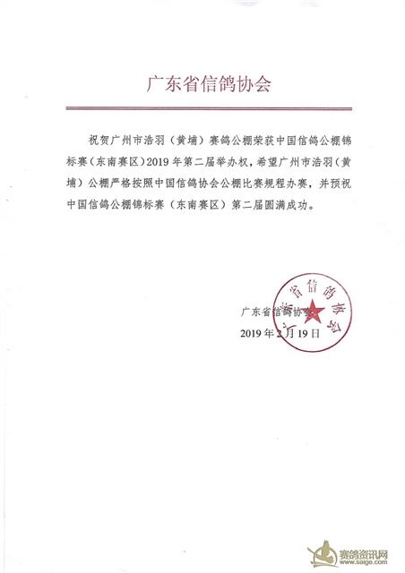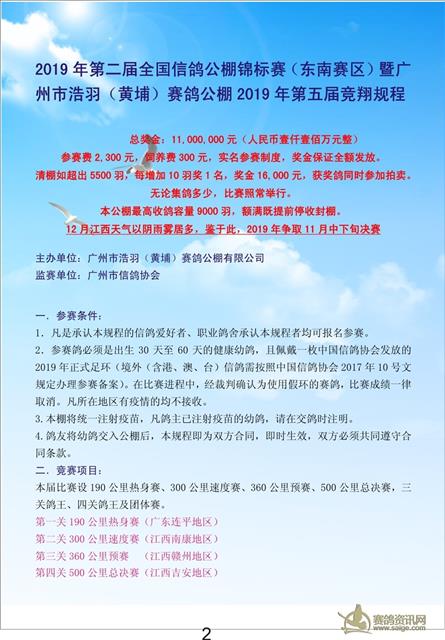 2019年第二届全国信鸽公棚锦标赛(东南赛区)暨广州市浩羽(黄埔)赛鸽公棚2019年第五届竞翔规程