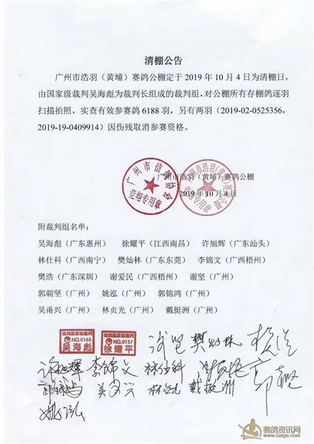 广州浩羽(黄埔)公棚2019年清棚当天公告