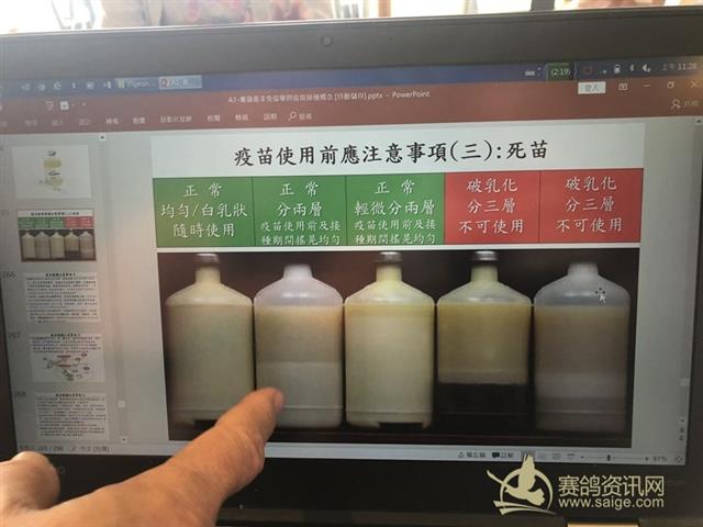 这张图是说油苗(灭活苗)若出现两层分层可用,当出现三层则说明疫苗已坏不能再用