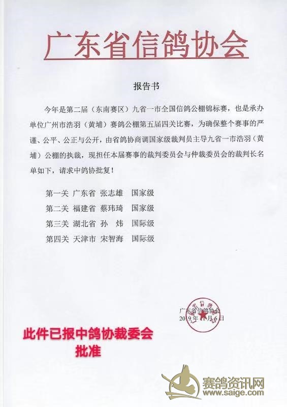 广州浩羽(黄埔)公棚转载省鸽协文件