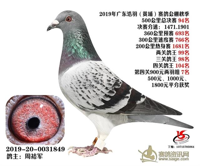 广州浩羽(黄埔)公棚2019年决赛获奖鸽图片(51名-100名)