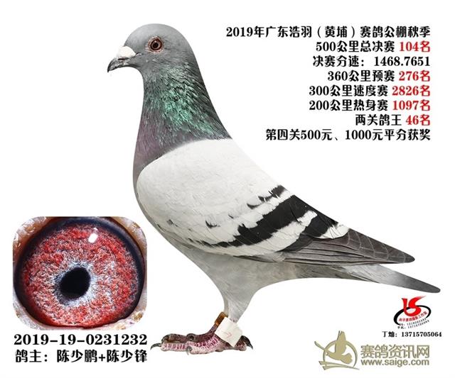 广州浩羽(黄埔)公棚2019年决赛获奖鸽图片(101名-150名)