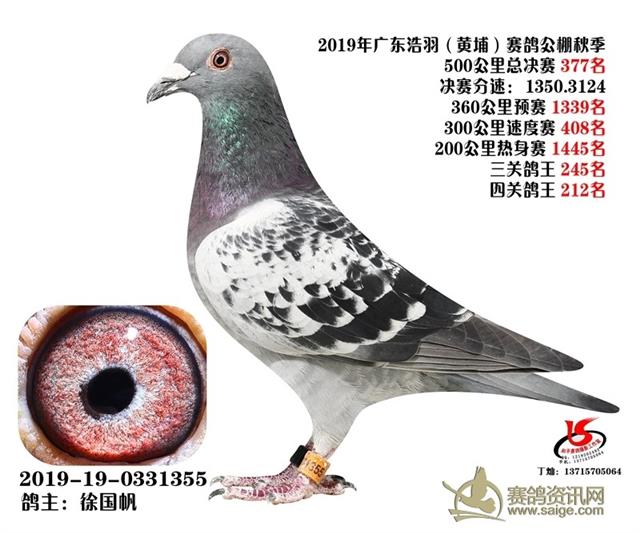 广州浩羽(黄埔)公棚2019年决赛获奖鸽图片(351名-400名)