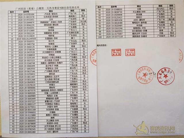 广州浩羽(黄埔)公棚第一关热身赛图片与开笼视频