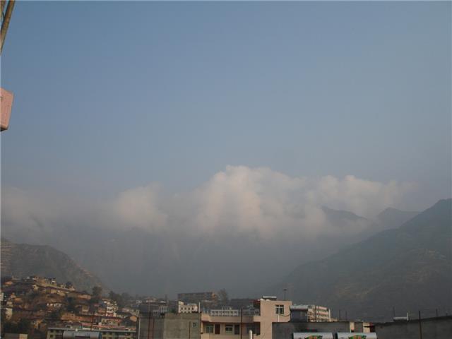 图9:9日晨武都旧城山、没水山云雾缭绕。
