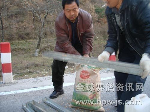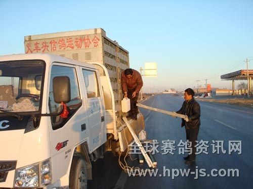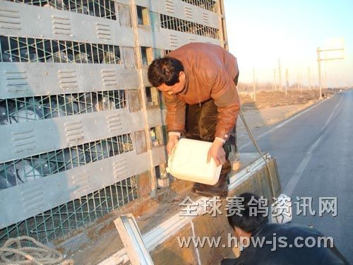 图为司放人员给鸽子加食加水