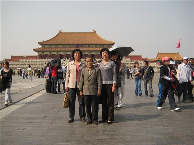 二十年前,在我的陪同下母亲去过一次北京,事过境迁人生苦短,母亲年老体弱但想再去趟北京的信心不弱。我们兄弟姐妹很担心,母亲这次远行身体行不行。五月初夏,在妹妹和妻子的陪同下,乘5个小时汽车到天水,又座19个小时的火车顺利到达北京。这次母亲去北京、西安等地方旅游一路很开心,都满八十岁了,一路风尘仆仆游山玩水游刃有余,让同行的妹妹和妻子少了些忧愁多了份快活。