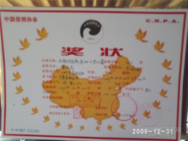 新的一年,新的期望。2010年“公棚赛暂行规定”从新年元旦起试行,同时养鸽人一生奋斗的荣誉“信鸽育翔师”等级制度也开始在2010年执行。我们怀揣新的期望,继续新的一年的养鸽生涯。即就是粮价还涨,它涨不过我们延续了几年、十几年、几十年的养鸽乐趣。新的一年人人都会有新的希望,我们也不忌讳失望,我们也盼望运气来临。只要我们都努力了,我们就无怨无悔。正是我们付出了,并有家人强有力的支持,带来了家庭和蔼。新的一年我们有新的期望。人寿鸽兴望,家和鸽事兴,家和万事兴。我们也知足了,而知足着长乐。正是养鸽的乐趣、育鸽的谜团、赛鸽的激情、成就和壮大着一代又一代的养鸽人队伍,正是养鸽人乐此不疲的爱好成就着中国信鸽事业的繁花似锦健康发展。