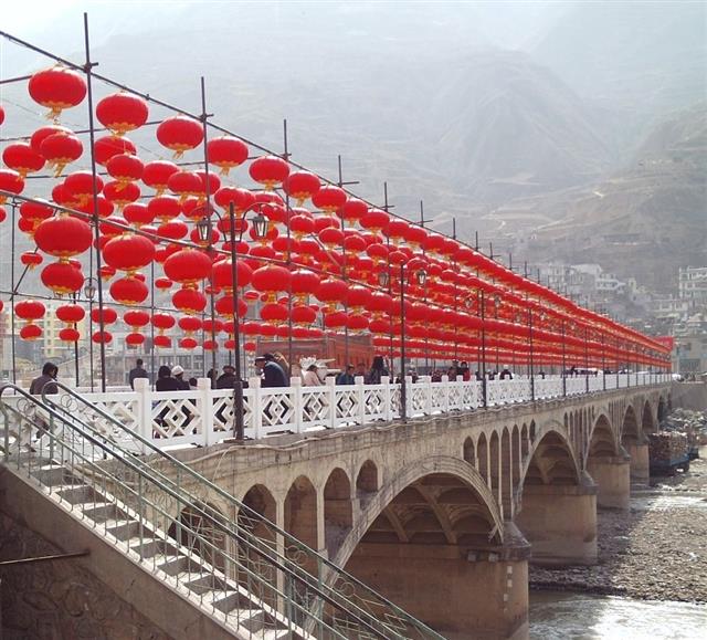 武都白龙江大桥大红灯笼红彤彤